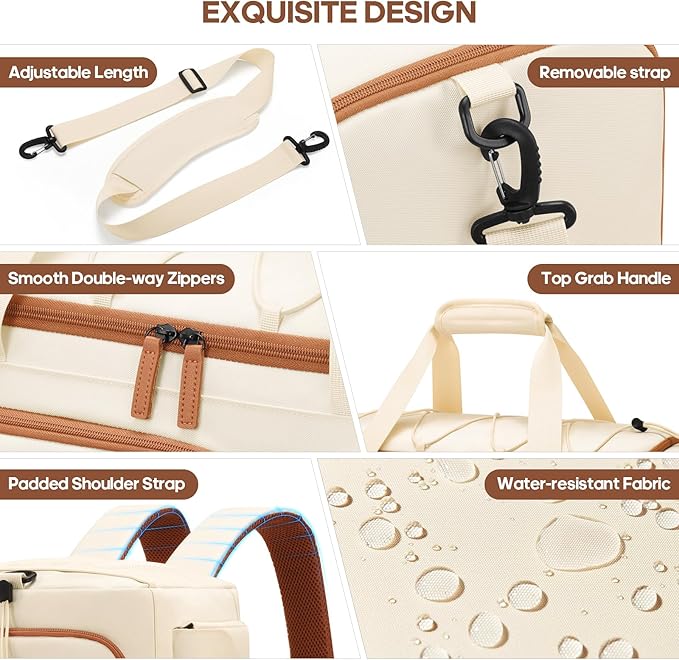 Gym Bag for Men and Women with Shoe & Laptop Compartment, 3-in-1 Sports Travel Duffel Bag Anti-Theft Weekender Carry-On Backpack for Airplane & Workout, Overnight Travel Bag,35L (Beige, Medium)