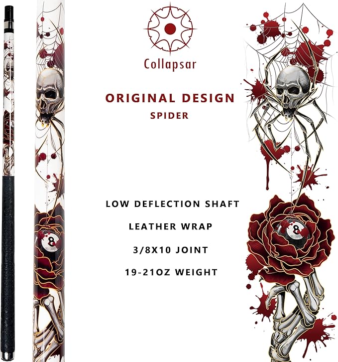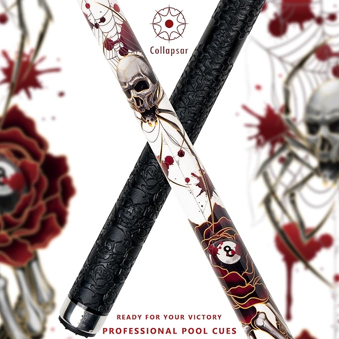 - COLLAPSAR 58" Original Skull Series Pool Cue Stick Come with a 1X1 Cue Case and joint protectors,Available in 19 - 21 ounce .