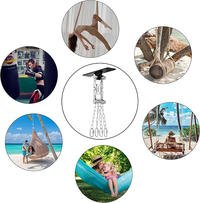 - Versatile Usage Scenarios:360 Degree Swivel Designed for heavy duty sandbag chaining and rotation, it is perfect for a variety of venues such as hanging heavy duty boxing sandbags, kickboxing bags, Muay Thai bags, swings, porch swings, sling swings, swivel seats, or any other swing used for playground swings.It can also be used for hanging deer in garages