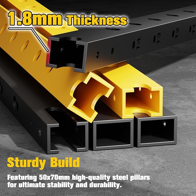 - Adjustable Cable Crossover System: Equipped with multi-pulley design, the F4 power rack's Cable Crossover System utilizes premium nylon pulleys and steel cables sheathed in tough PU material for seamless movement. Ideal for a wide range of exercises including chest flyes, high-low crosses, bench presses, bent-over rows, lat pulldowns, and overhead tricep extensions, this system delivers a smooth, high-performance workout.