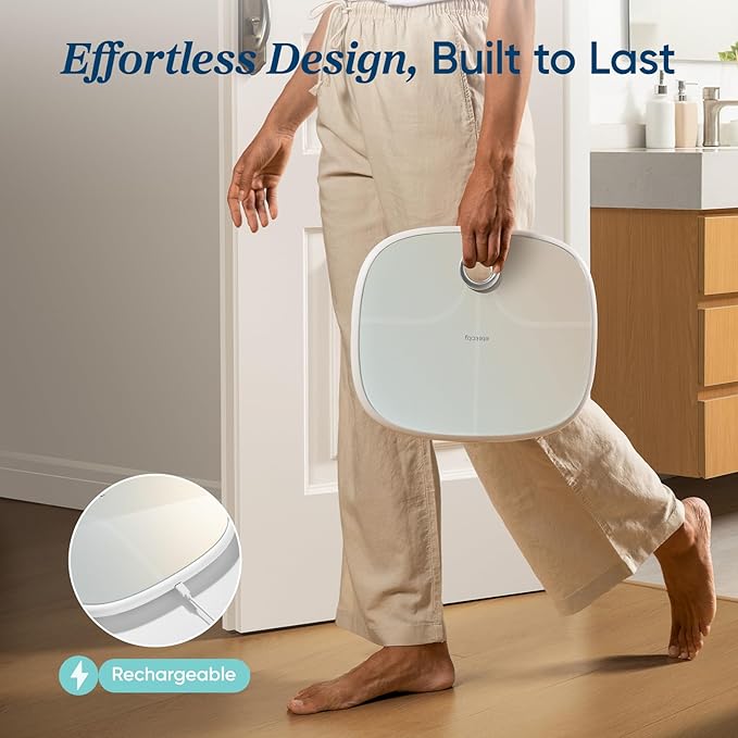 Etekcity Smart Rechargeable Scale for Body Weight, BMI, Fat, Muscle Mass, Digital Bathroom Scale with 13 Metrics, Secret Mode, Bluetooth Connect to Free Apps, Rainbow White