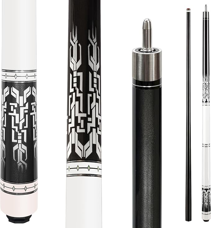 • ?�Premium Material?? Pool cue black section made of glass fiber, backend is made of Canadian maple wood maple wood, finished with matte paint. Features a two-piece pool cue stick design for easy transport and storage.