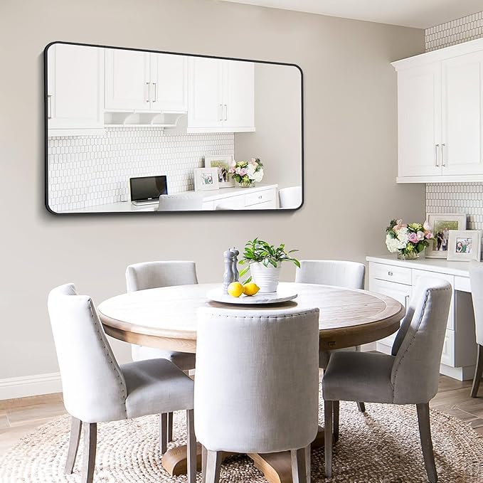 FORBATH Large Bathroom Mirror 36 x 55 Inches,Black Large Wall Mirror Aluminum Frame Wall Mounted Rounded Corner Morndern Mirror for Bathroom Bedroom Entryway Living Room