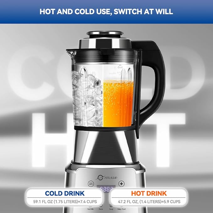 - Heating & Keep-Warm Function – Designed for Comfort – Enjoy soups, nut milks, and warm drinks anytime. The double-layer heat-resistant glass jar blender ensures safety, while the built-in heating element keeps your beverage warm (86–194°F/ 30-90°C). This licuadora combines power, so your family can enjoy a hot drink even if they arrive home late.
