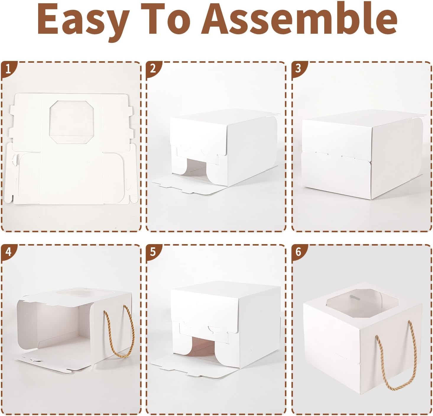 - Exquisite design: The 6in cake box clear and transparent wavy window at the top allows exquisite and lovely desserts to be fully seen, and the 6 cake box slides into the box from the front to complete the assembly of the 6x6 cake box.