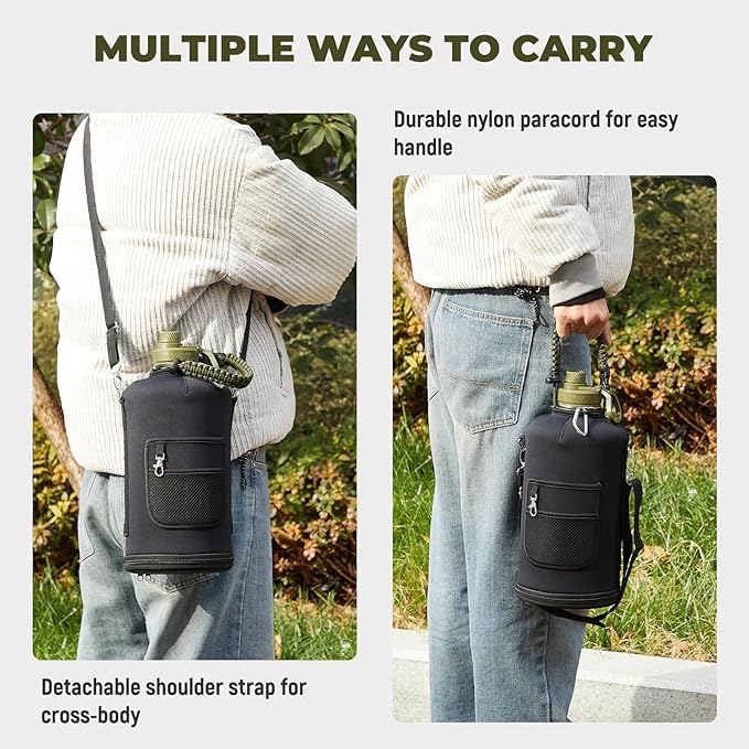 - What You'll Get: Buy 2 pack one gallon insulated water bottle, independent carton packaging,get double accessories (Carrying Pouch, Straw Lid with 2 Straws & Straw Brush, Spout Lid, Paracord Handle, Bottle Brush). We offer Continuous After-sales Service and 100% customer satisfaction against any leakage or insulation failure