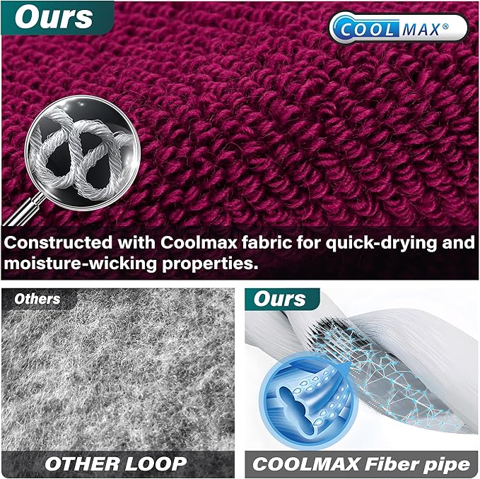 • Fabric type : 48% Coolmax, 8% Lycra, 44% Moisture Wicking Nylon
