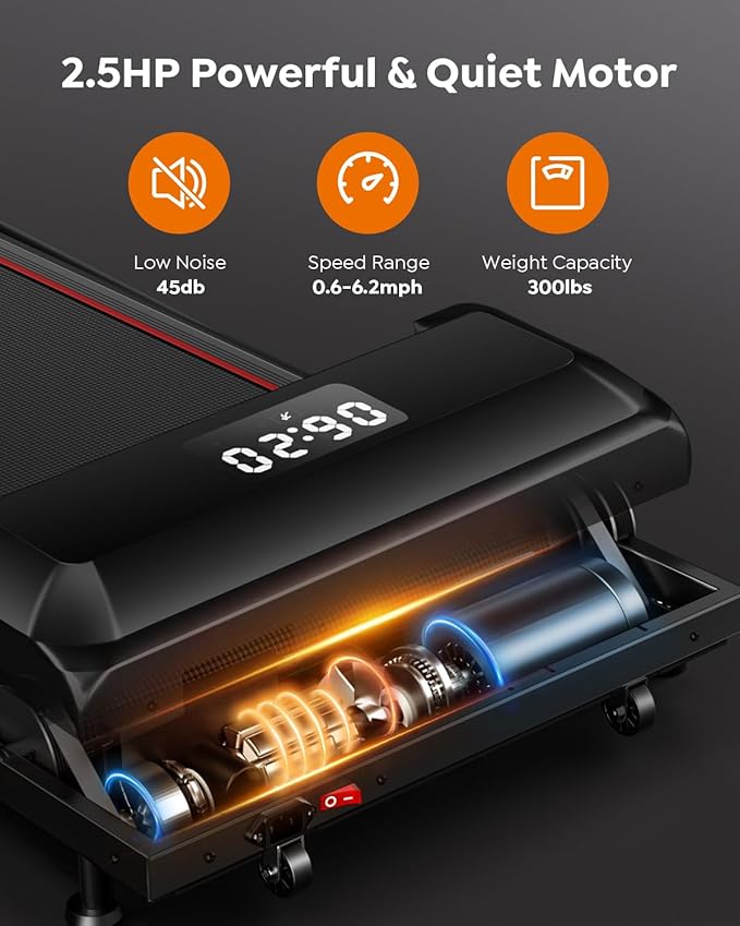 - 【2.5HP Power & Stable Motor】The walking pad with handle bar mit 2.5HP motor provides speeds of 0.6-6.2MP to support switching between walking and running at will, 300lbs weight capacity, which can meet the exercise needs of you and your family at different stages better. Easy to maintain exercise even inclement weather. Built-in cooling system and ultra-quiet operation, say goodbye to worry about disturbing your family or others.