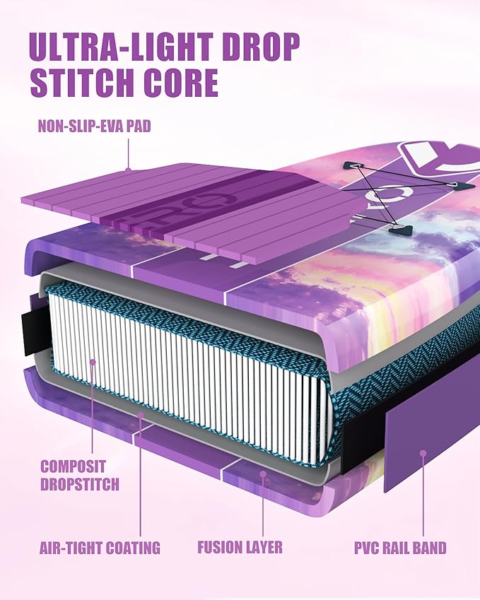 - 【6-point Bungees】The 6-point bungees on the inflatable paddle boards are specifically designed to provide secure attachment points for your personal items such as dry bags, coolers, or paddle accessories. They are made of high-quality elastic material that offers both flexibility and strength, ensuring that your belongings stay in place during your paddleboarding adventures.