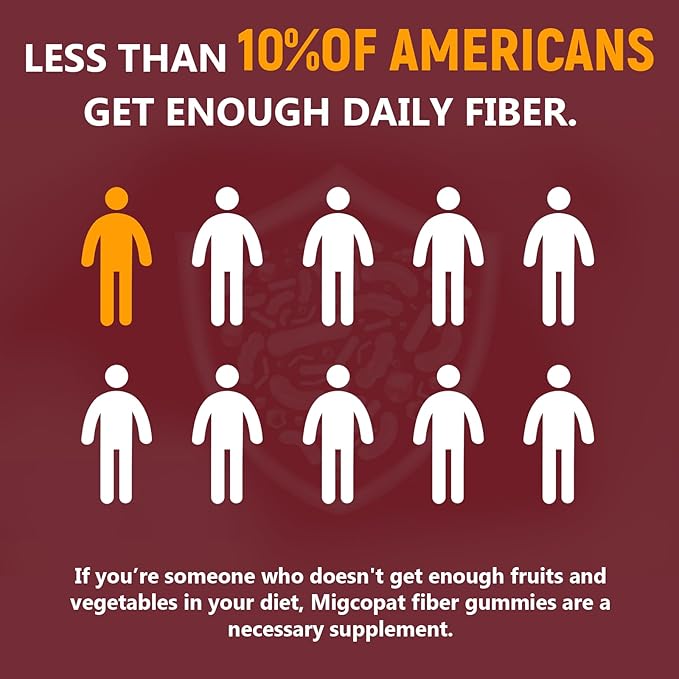 - 10G Natural Plants Fiber : Only 7% of Americans get the recommended daily amount of fiber every day. Migcopat Gummies offers the most fiber per serving. With just 2~3 gummies every day, Migcopat Gummies supplements more than 30% of your daily fiber intake.Our Fiber Gummies are made with natural sweetener, a plant-based zero-calorie sweetener that won't cause cavities.