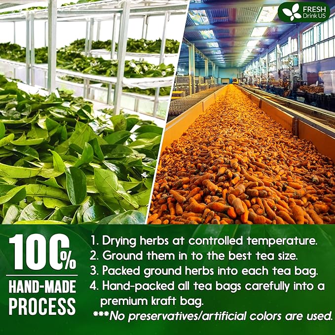 FreshDrinkUS, Premium 60 Soursop Turmeric Tea Bags, 100% Natural, Blend of Soursop Leaves, and Turmeric Root. Made with Natural Material Tea Bags. No Sugar, Vegan.