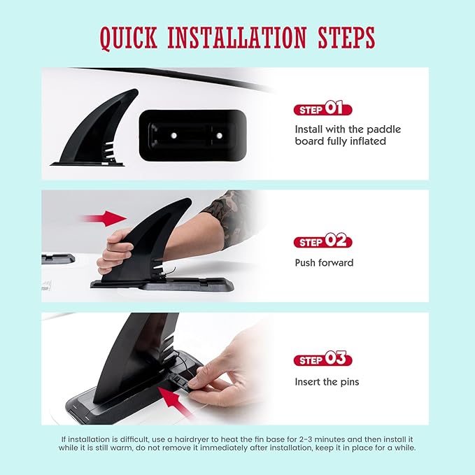 - 【Fin Upgrade】Our paddle boards are made with new upgraded fins, developed by our independently designed mould. Our fins install more smoothly and won't get stuck. The fins slide effortlessly into the fin base, making installation and removal easier and faster