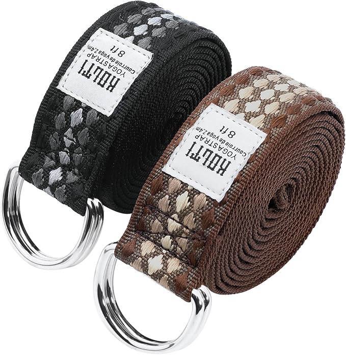 - STURDY & TOUGH STRETCHING STRAP - The yoga strap is constructed of a durable high-quality fabric blend of polyester, reinforced stitching, will not fray or break, the maximum load of the band is 2,379 lbs (1.079 ton). Washable, skin-friendly with eco-friendly dye (Non-Elastic Yoga Strap), easily rolls up and fits in your yoga mat bag or tote.