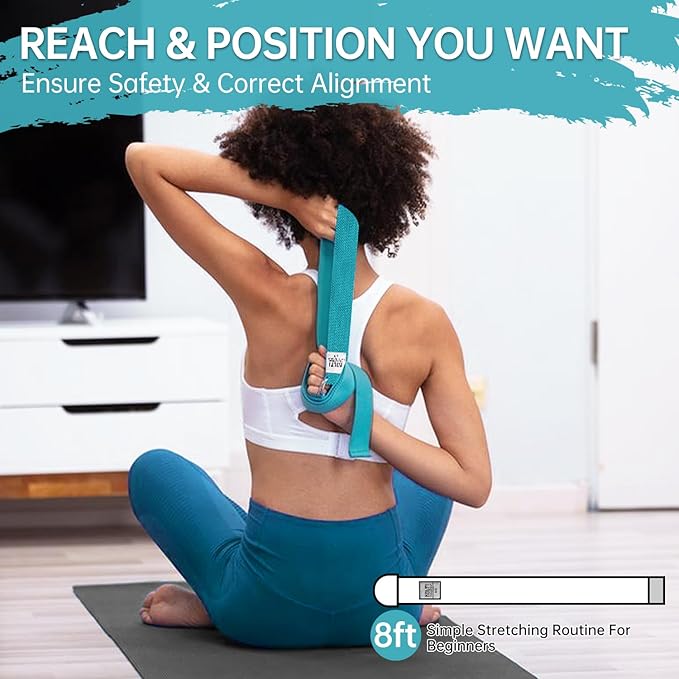 - STURDY & TOUGH STRETCHING STRAP - The yoga strap is constructed of a durable high-quality fabric blend of polyester, reinforced stitching, will not fray or break, the maximum load of the band is 2,379 lbs (1.079 ton). Washable, skin-friendly with eco-friendly dye (Non-Elastic Yoga Strap), easily rolls up and fits in your yoga mat bag or tote.
