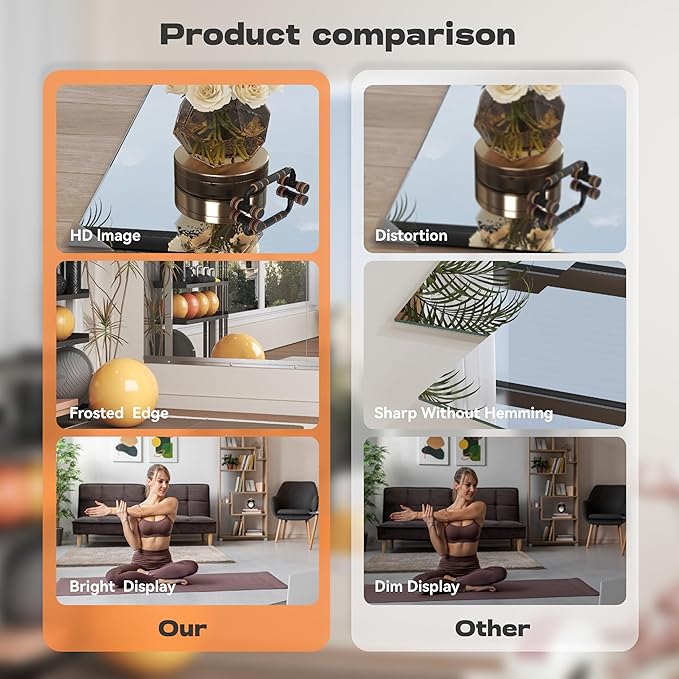 - 🍧[After-sales Service] We have more than 20 years of experience in glass production, and we guarantee that the fitness mirrors you receive are thoroughly quality guaranteed. Mirrors are fragile and collisions are inevitable during transportation. If you find any problems or any parts are missing when you receive the mirror, please contact us in time. We will solve the problem for you as soon as possible.