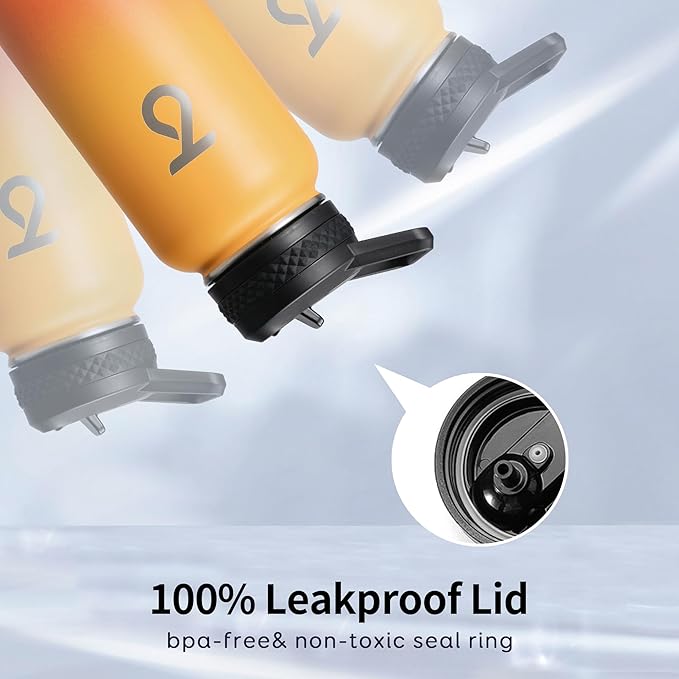 - Leakproof Triple Lids: Each lid comes with a rubber seal ring to ensure 100% leakproof. Sip through the flip-up straw lid, drink like a fish through the spout lid, or refill ice cubes through the wide mouth, you are in good hands with Trebo 32 oz water bottle.