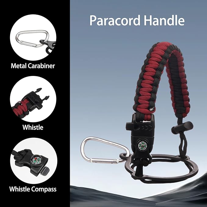 - Suitable for all occasions: This insulated water bottle comes with a beautiful hand-woven nylon paracord, and the paracord handle is equipped with a compass and carabiner and a whistle. It is a fully functional essential water bottle for camping, climbing, hiking, home use, travel, cycling, swimming fitness, and commuting