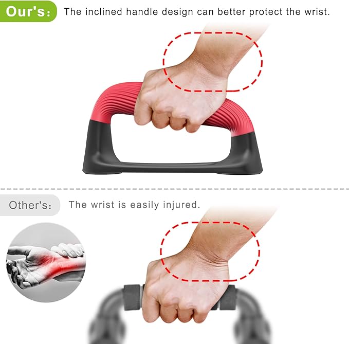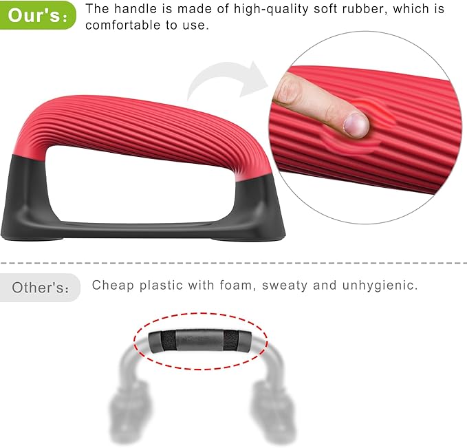 - 💎【Comfortable and Secure Grip】Our push up bars feature thickened soft plastic handles that provide a comfortable and ergonomic grip. The handle has a textured surface that prevents slipping and enhances stability. The handle is also angled to allow a natural range of motion and prevent injury