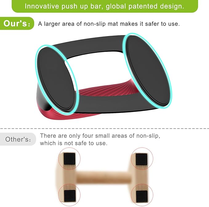 - 💯【Stable Non-Slip Base】The base of our push up bars is designed with anti-skid pads that increase friction and prevent sliding on any floor surface. You can focus on your form and technique without worrying about injuries or accidents
