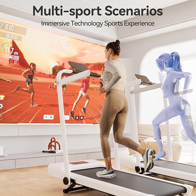- Folding Treadmill Space-Saving : This design can help you easily fold the treadmill, simply 5.3 inches height can be perfectly stored, you can completely put it under the bed or under the sofa, help you save at least 60% of space, and the thoughtful design of the front side pulleys saves your time and effort, it is the best choice for your home and office fitness