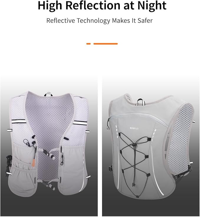 - 【Breathable and Ergonomic Design】 Ecohub running hydration vest engineered with 3D contour stitching that follows spinal curvature, reduces vest shift and bouncing during runs. The breathable rhombic ventilated mesh design keeps your back cool by maintaining air circulation, preventing discomfort due to accumulated heat. (PATENT PENDING)
