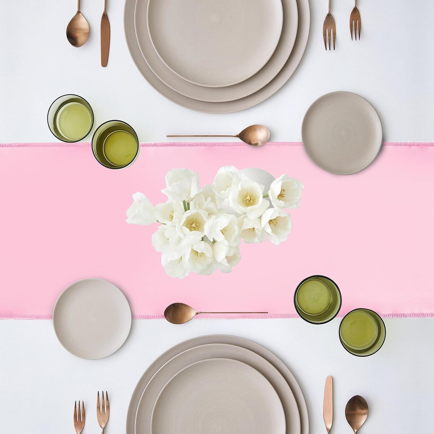 10 Pack Satin Table Runner 12 x 108 Inch Long Pink Silk Table Runner for Wedding Party Banquet Birthday Decoration