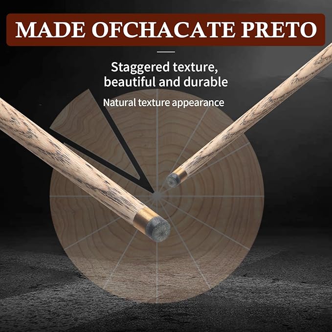 - Exquisite Shaft Craftsmanship: The three pool sticks are made of hard black walnut woods, wear-resistant and durable. Splicing craftsmanship makes the cue structure stable and not easy to crack and deform