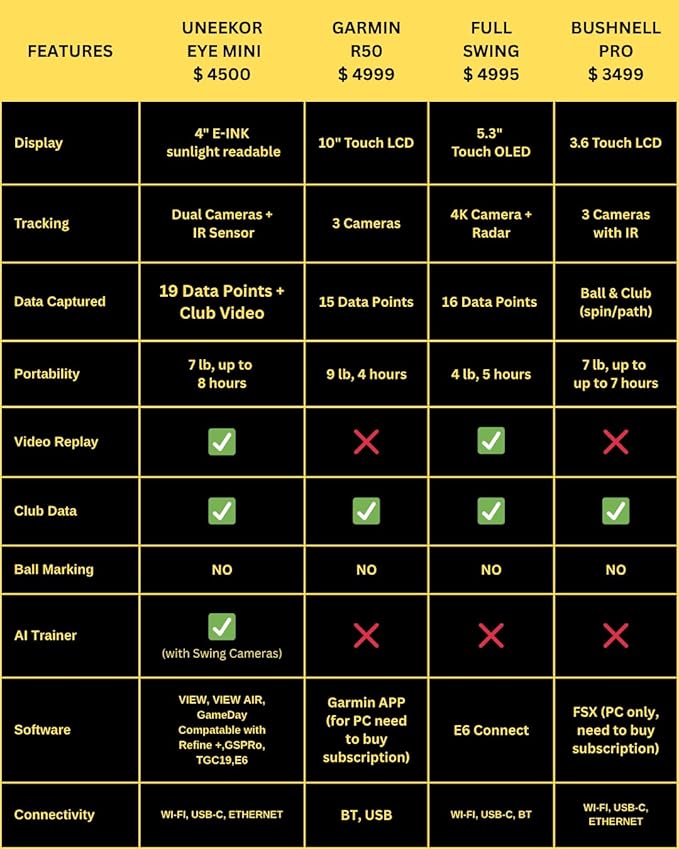 Eye MINI - Outdoor/Indoor Golf Launch Monitor & Simulator, 19 Precision Metrics, Near-Zero Latency, Sunlight-Readable Display, 8h Battery, iPad/PC/AI Compatible, Works with GSPro, E6, TGC19