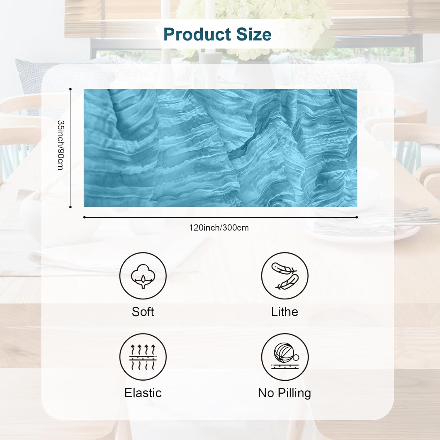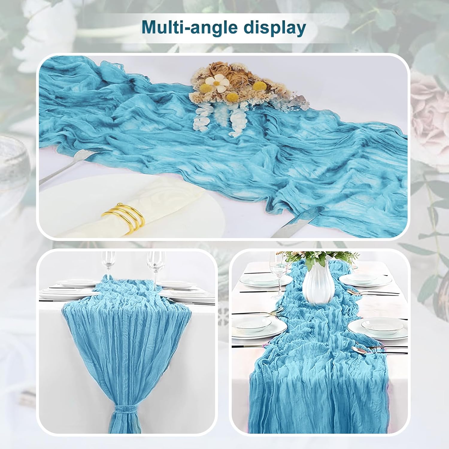 - Premium Materials: Our table runners are crafted from high-quality cheesecloth and gauze. The baby blue cheesecloth table runner has good softness and breathability, while the gauze table runner offers a delicate and elegant texture. These materials are carefully selected to ensure durability and a luxurious feel, making your table look and feel extraordinary.