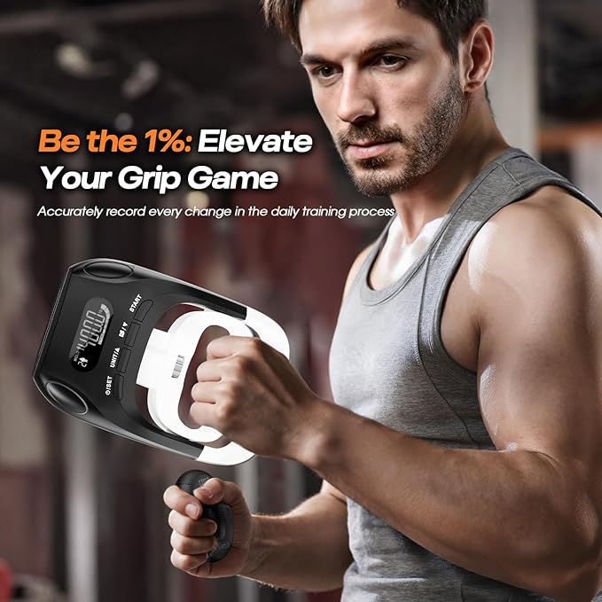 - [2-in-1 Grip Strength Tester & Trainer] Instantly switch between precision testing with the digital dynamometer (400lb max) and power-building using the ergonomic resistance ring. Perfect for athletes and fitness goals - test your grip strength, then train for measurable gains.