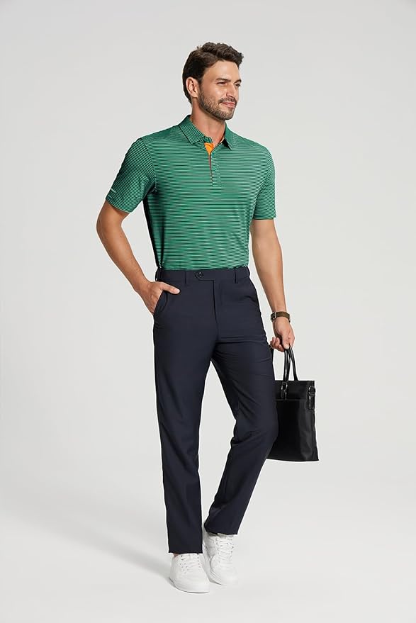 Golf Shirts for Men - Moisture Wicking Short Sleeve Performance Sport Casual Striped Collared Mens Polo Shirt