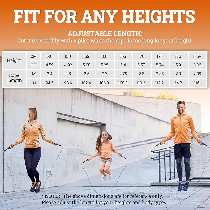 - Adjustable and Tailored Workouts: Two 9.8-foot polymer-coated cables are part of the package, allowing for easy length adjustment. You can customize the jump rope's length to match your height and specific training requirements. This adaptability makes it an ideal choice for both men and women, ensuring a personalized and perfect fitness experience.