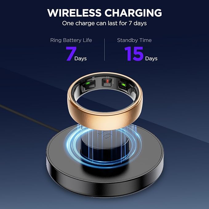 - Long Battery Life and Waterproof: Waterproof smart rings fitness tracker with wireless charging, after the sleep tracker ring is fully charged, it can be used continuously for up to 7 days. Whether it is birthday, Valentine's Day, Mother's Day, Father's Day, Thanksgiving, or Christmas, smart rings are a practical and meaningful gift.