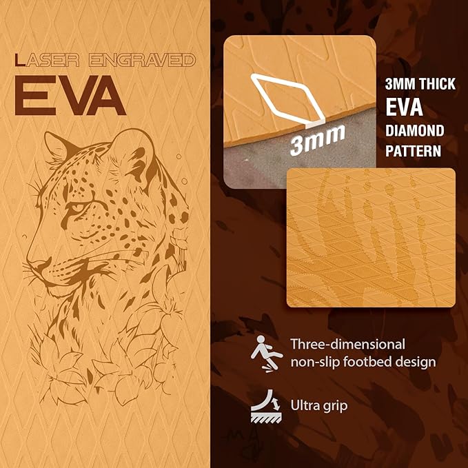 - 【Laser engraved EVA】 Surface laser engraved 3mm thick EVA diamond pattern, high coefficient of friction (≥0.6), wet still maintain a strong grip, with three-dimensional non-slip foot pad design, to avoid slipping and falling, the safety coefficient of pull full.