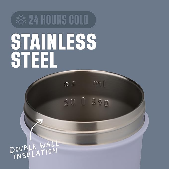 BlenderBottle Strada Sleek Shaker Cup Insulated Stainless Steel Water Bottle with Wire Whisk, 25-Ounce, Violet