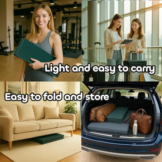 Foldable Yoga Mat 12mm Extra Thick Joint Protection,Portable Design for Travel/Pilates/Board/Camping,Environmental Sports Mat Non-Slip Gym Mat,Odorless POE Material