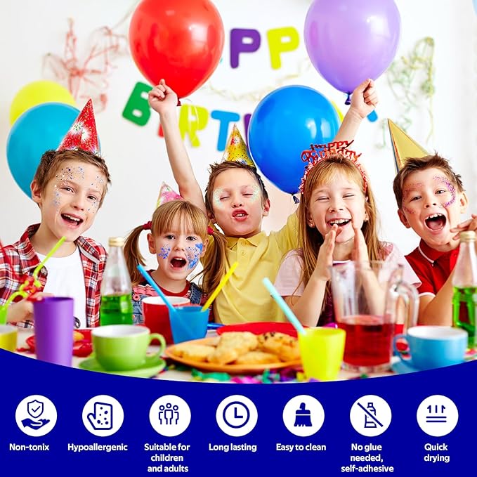 - 【Easy to Wash Off】 Washes off the long lasting Glitter in seconds! Simply remove with soap and water. No scrubbing, no mess—just a fun, fabulous look with an easy cleanup.