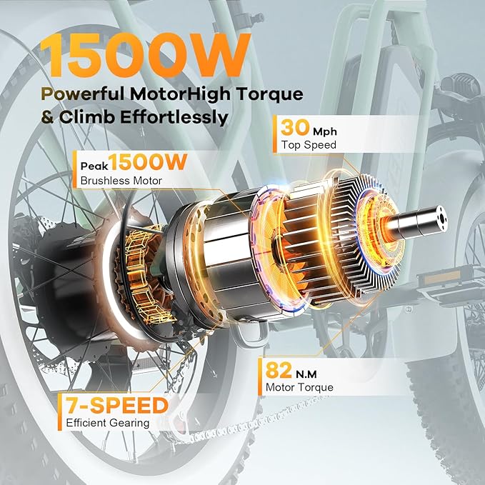 - ๐๐จ๐ฐ๐๐ซ๐๐ฎ๐ฅ ๐๐๐๐ค ๐๐๐๐๐ ๐๐จ๐ญ๐จ๐ซ:This electric bike is powered by 1000W(Peak 1500W) brushless motor, easily reach a top speed of 30 MPH. With strong driving force and climbing hills ability, climbing 30ยฐslopes, can conquer various terrains such as beaches, mountains, snow, city streets.If you like thrills and challenges, you can also ride this mountain Ebike for a non-stop adventure