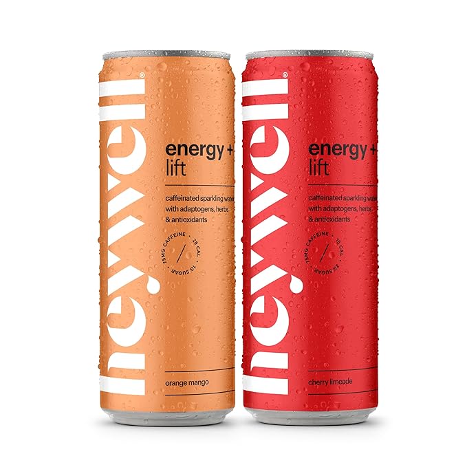 - VARIETY PACK – Cherry Limeade & Orange Mango This Heywell variety pack includes two refreshing flavors designed to support energy, focus, immunity, and stress relief. Lightly sparkling with just 10 calories and 1g sugar, these adaptogen drinks are made with organic ingredients, electrolytes, and are Non-GMO, Vegan, Gluten Free, and alcohol-free—perfect as a functional mocktail or daily boost.
