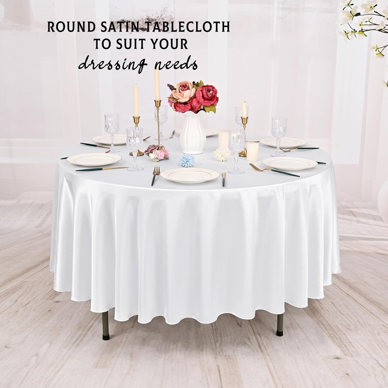 10 Packs Satin Tablecloth 120 Inch White Round Table Cloth Silk Tablecloth Smooth Fabric Overlay Satin Table Cover Decoration for Wedding Party Banquet Events