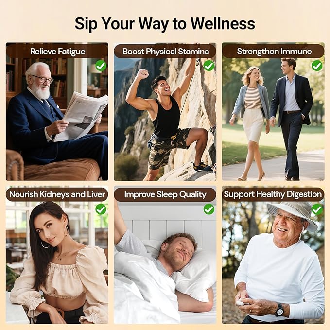 - RICH HERBAL FLAVOR & SWEET TASTE: As you open the tea bag, you can first smell the sweet aroma of red dates, When brewing and tasting, the mellow sweetness of red dates balances ginseng's subtle bitterness with wolfberries' slight sourness and mulberries' fruity aroma for layered flavor. Every sip fuels your life with endless vitality