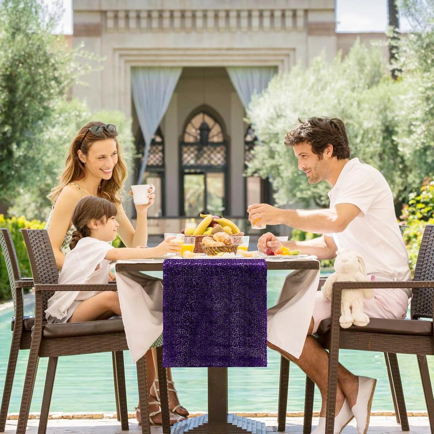 10 Packs 12 x 72 inches Sequin Table Runner, Purple Glitter Table Runner for Birthday Party Supplies Wedding Engagement Baby Shower Holiday Celebration Event Decorations