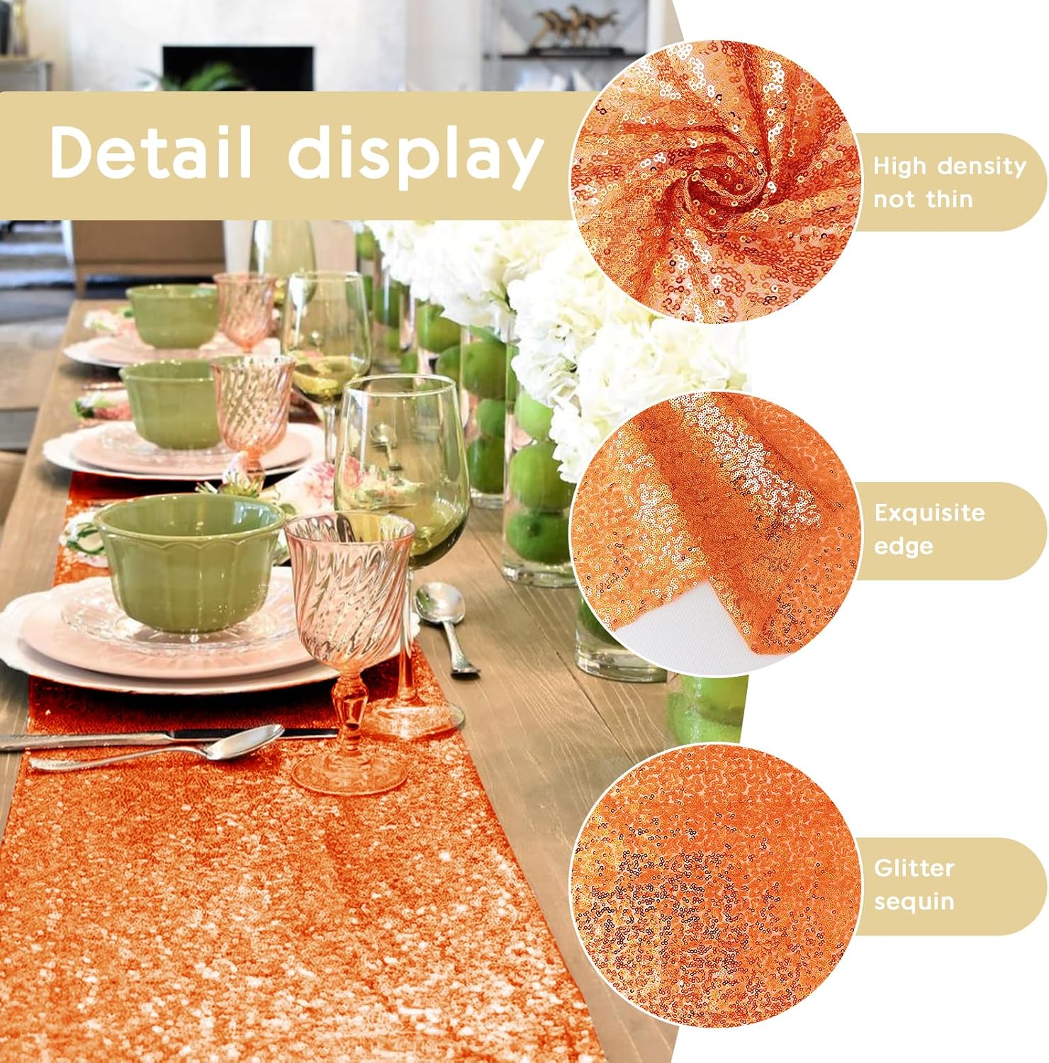 10 Packs 12 x 72 inches Sequin Table Runner, Orange Glitter Table Runner for Birthday Party Supplies Wedding Engagement Baby Shower Holiday Celebration Event Decorations