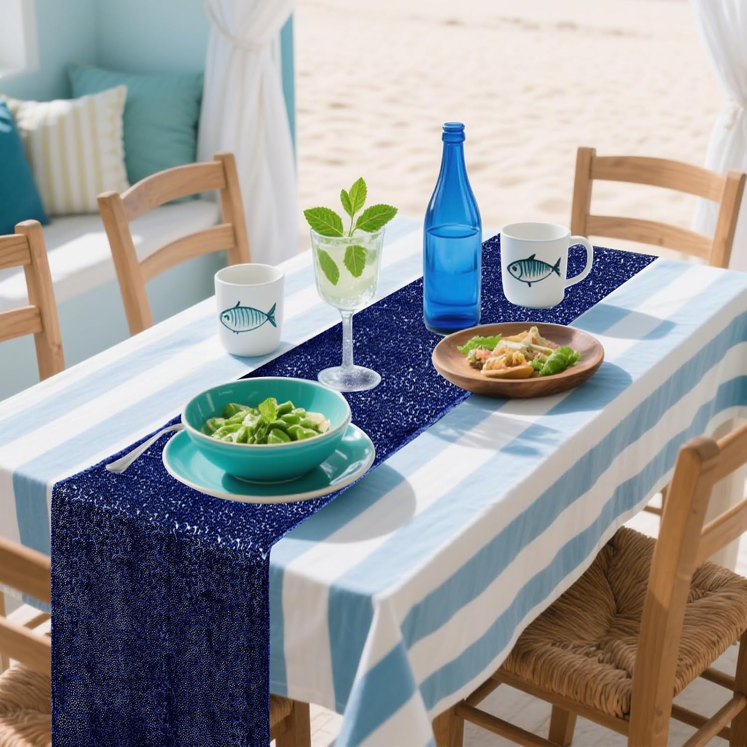 10 Packs 12 x 72 inches Sequin Table Runner, Navy Blue Glitter Table Runner for Birthday Party Supplies Wedding Engagement Baby Shower Holiday Celebration Event Decorations