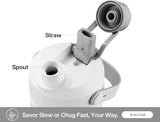 - 2-in-1 Leakproof Lid: Features a straw for easy sipping and a spout for effortless pouring or chugging; Toss it in your bag or car, offering no spills and endless thrills