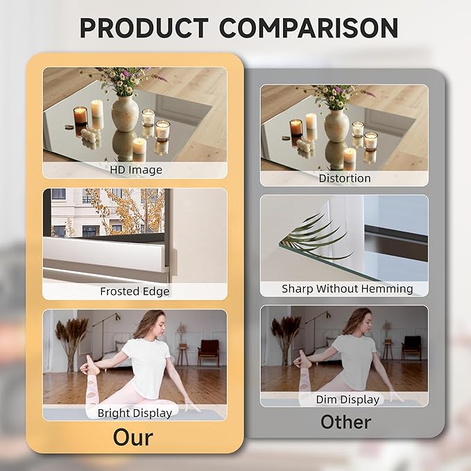 - Designed for High-Energy Spaces: Made with shatter-resistant tempered glass, this Hasipu full-length mirror ensures maximum safety and toughness. Perfect for home gyms, yoga studios, and dance rooms—it withstands impact and prevents hazardous breakage.