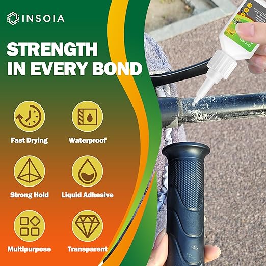 - ?��️【Fast Bonding Motorcycle Grip Glue?‘INSOIA grip glue delivers an instant, ultra-strong bond designed for motorcycle grips, dirt bike grip glue applications, and more. Achieve professional-grade adhesion in just 10??5 seconds, ensuring your handlebar grips lock in place without slipping?”even under extreme vibration, off-road terrain, or aggressive riding conditions.
