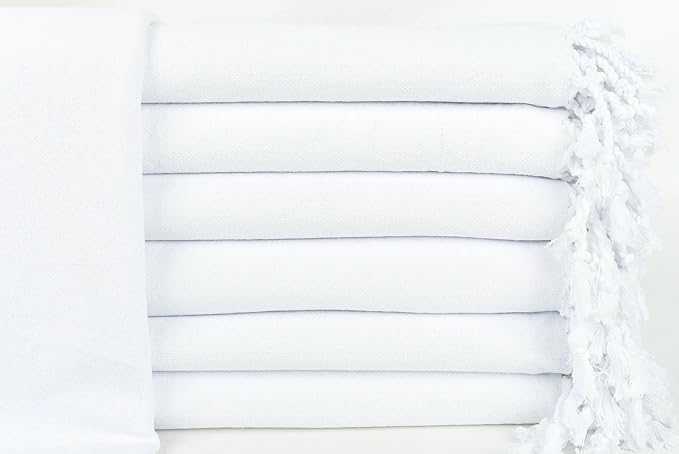 HAVLULAND Turkish Beach Towel Oversized 72’’x40’’ - Set of 6 | 100% Cotton Lightweight Sand Free Quick Dry Pool Towels | Extra Large Towels for Tie Dye Bath Towel Adults Beach Blanket Bulk of 6 White
