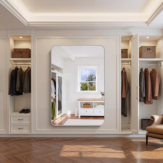 - Elegant Rounded Corners & Premium Safety: Featuring a sleek silver metal frame with softly contoured rounded corners. This sophisticated design combines modern elegance with enhanced safety, eliminating sharp edges while adding a luxe minimalist finish. The rich black frame elevates any decor, creating a visually expansive effect that brightens spaces and amplifies the sense of openness.