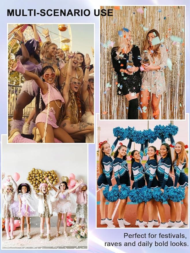 - Party-Proof for 8 Hours – No Flaking or Itching: Flexible gel formula locks glitter in place through sweat, while remaining lightweight and breathable. Even sensitive skin stays happy—say goodbye to cheap, scratchy glitters.